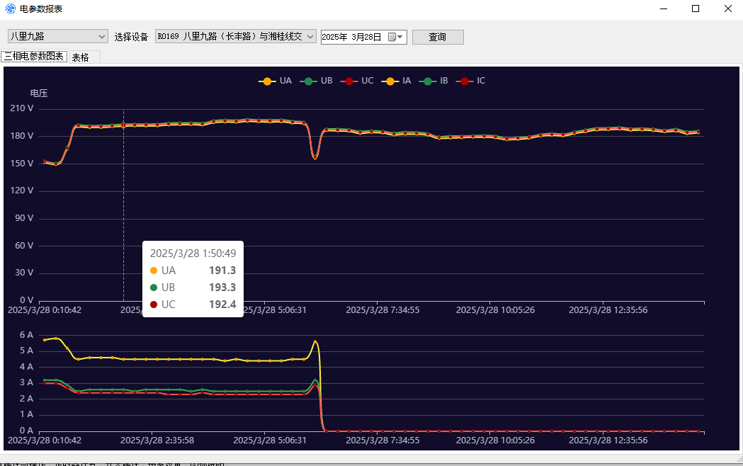 • 6個電流數據采集端口,分別是三相總電流,三支路電流